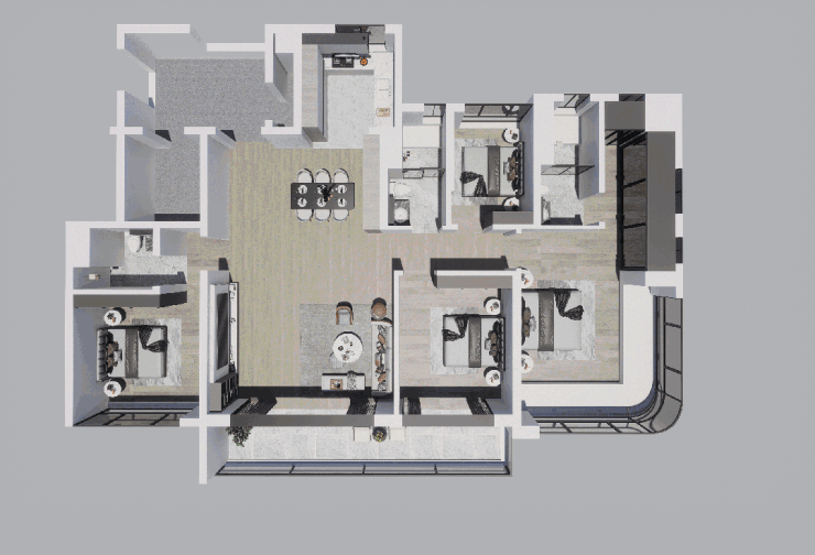 四居室户型则是大家庭的理想之选,多个卧室满足家庭成员的居住需求,同时还有宽敞的客厅、餐厅和多功能房,可根据您的需求进行灵活改造,如打造为影音室、健身房等,为您的生活增添更多乐趣。