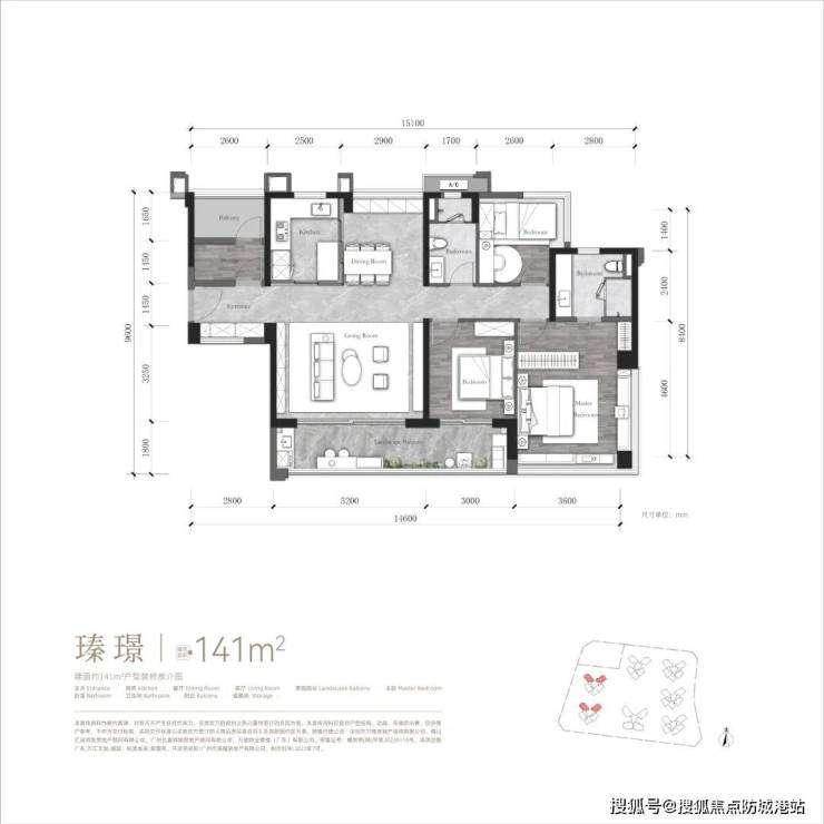 141㎡五房:双套房设计,主卧270°全景端厅,科学收纳系统,满足多代同堂需求,总价约750万元/套;