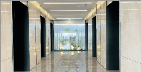 答:公区含2.3米宽走廊、共享茶室、会议室、路演厅、直播间、VIP洗手间、公共茶水间等全维配套。