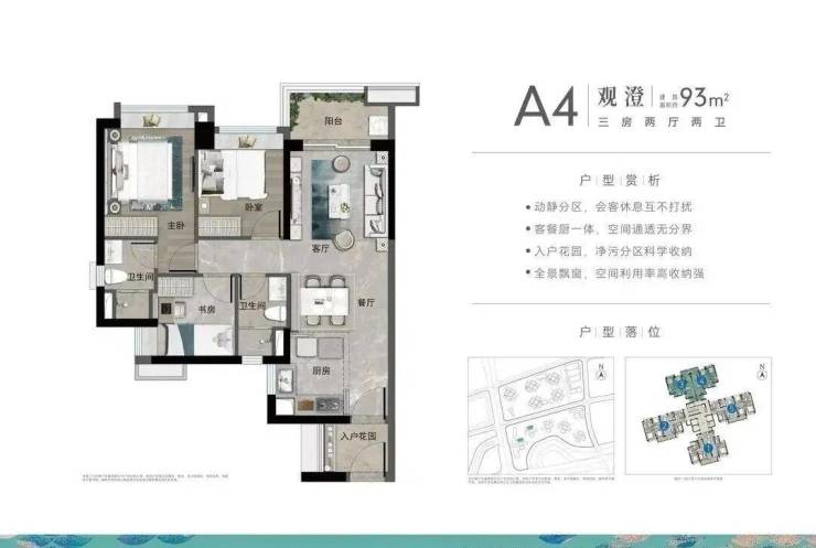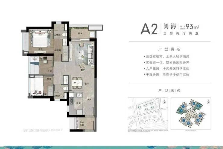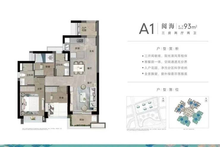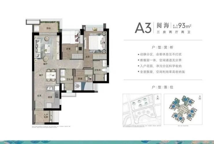 阅海组团:紧邻公园、学校和酒店,超高层共45层高,4梯8户,主要户型为93平方米。