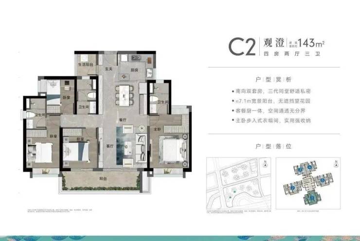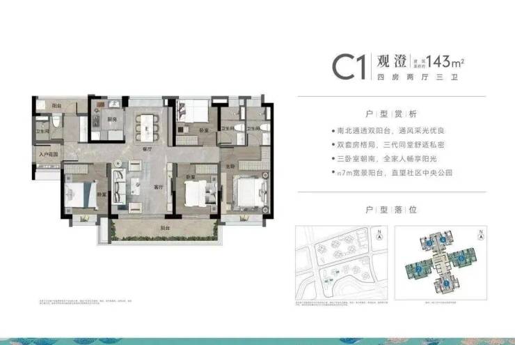 观澄组团:同样紧邻公园、学校和酒店,超高层共45层高,4梯8户,户型覆盖87平方米至143平方米。