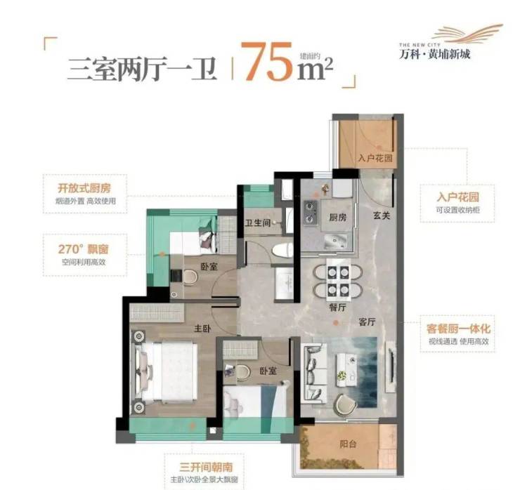 万科黄埔新城提供了多种户型选择,从75平方米到143平方米不等,涵盖三房至四房的设计,满足不同家庭结构的需求。具体户型如下: