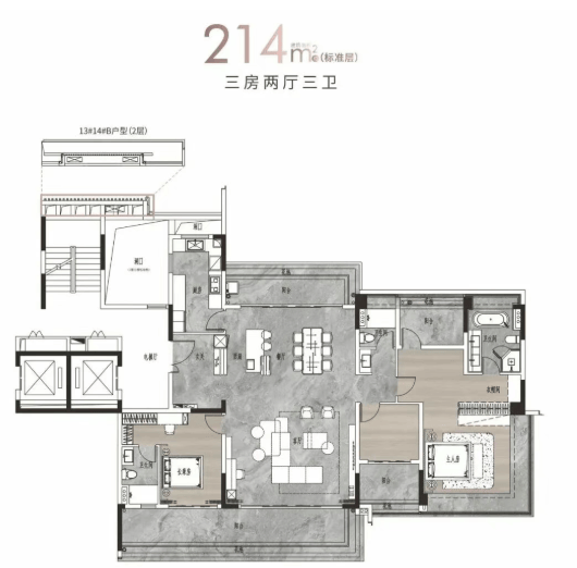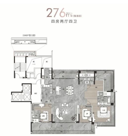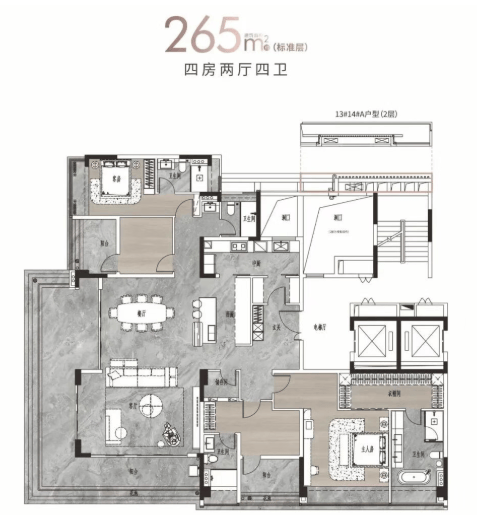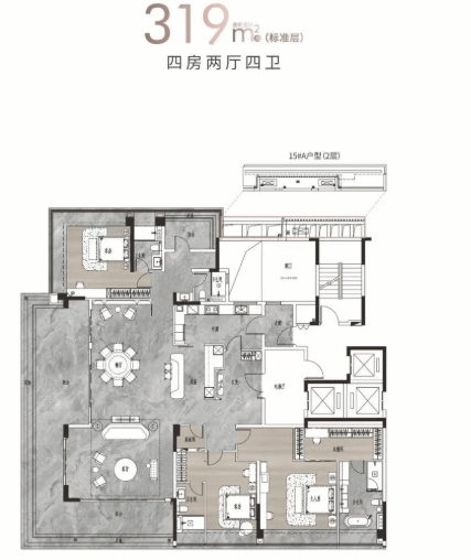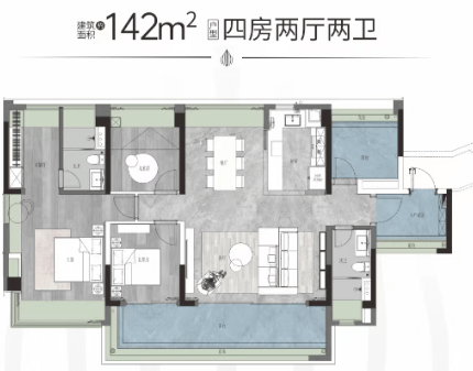 项目主打125至319平方米的大平层产品,均为新规户型,得房率高达103%至115%,显著优于市场平均水平。户型设计亮点突出,包括270°环幕阳台、入户花园、双套房配置、7米宽厅及主卧飘窗等,充分满足改善型家庭对空间感、功能性和景观视野的多重需求。楼栋布局合理,其中4-12栋为2梯4户高层,1-3栋及13-15栋为2梯2户大平层,确保每户采光与视野不受遮挡。需注意的是,部分户型存在硬伤,如10号楼02户型江景被遮挡但价格偏高,12号楼03户型主卧西晒严重,购房者选房时应仔细甄别。