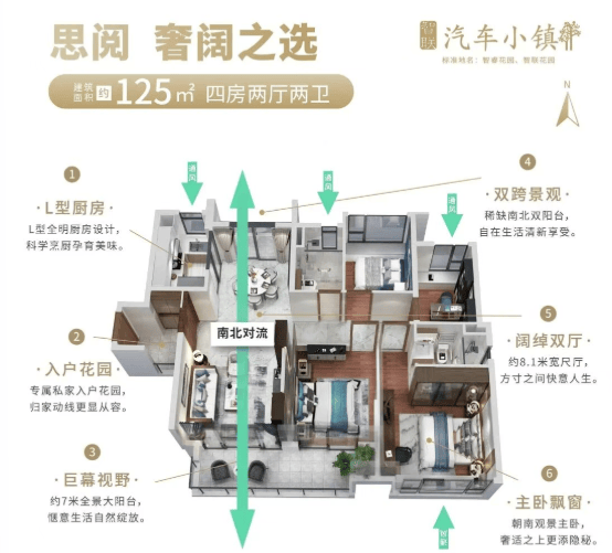 在产品力打造上,智联·汽车小镇紧跟市场新规,推出了兼具实用性与舒适度的精工户型。项目目前在售户型面积段为95至125平方米,涵盖刚需改善至舒适型三至四房需求。建筑采用2梯4户的合理梯户比设计,总层高介于29至32层之间,标准层层高达到3米,空间感开阔。虽然具体实用率数据需结合具体户型图测算,但得益于现代化的建筑设计理念与合理的公摊控制,其户型布局方正、动静分区科学,采光通风效果优异,极大提升了空间的使用效率与居住舒适度,完美契合现代家庭对理想居所的功能期待。