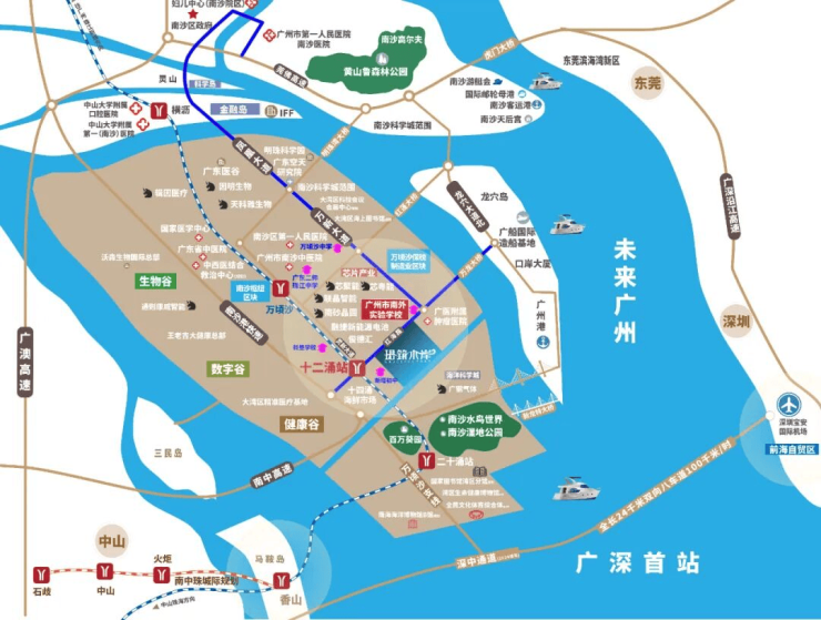 项目占据湾区交通枢纽要位,距深中通道广州支线出入口仅约2公里,一桥直抵深圳前海,高效融入广深“半小时经济圈”。同时,距离在建的广州地铁18号线南延段【十二涌站】约1.2公里(广州段预计2025年开通),该线路为全球最快高速地铁,设计时速160公里,5站直达珠江新城CBD,2站接驳番禺广场枢纽。未来更可无缝衔接中山、珠海等湾区城市,形成多城联动的立体交通网络,极大提升通勤效率与资产流动性。