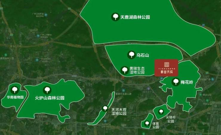 周边天河湿地公园、黄陂生态湿地公园、科学城体育公园、天鹿湖森林公园、华南植物园、火炉山森林公园等6大公园环绕。低密鲜氧环境,成就生态奢宅居住体验。
