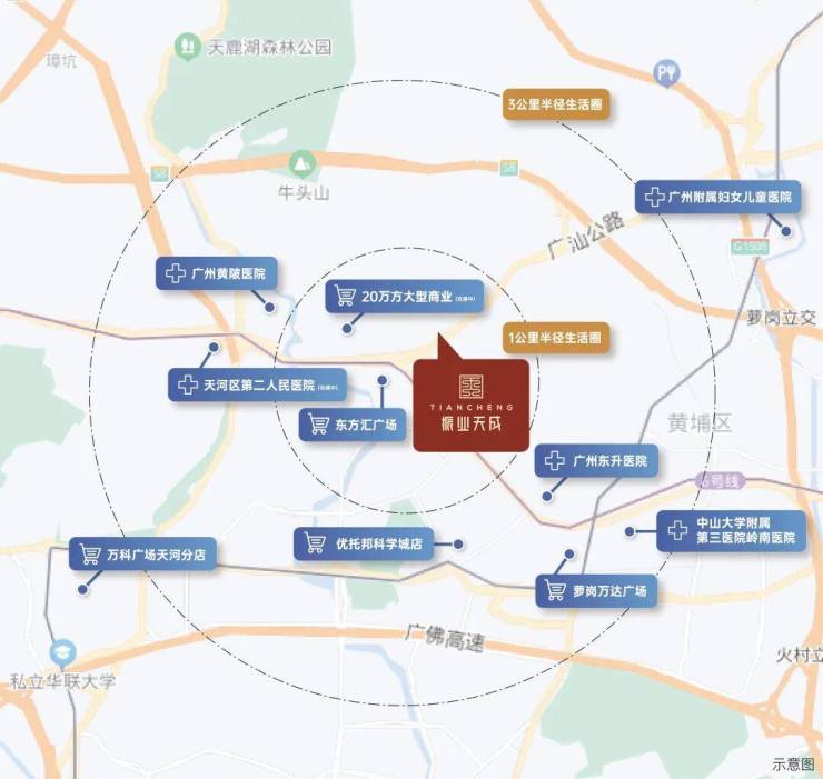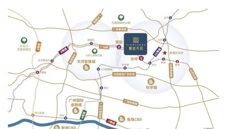 城市轨交:步行可达地铁6号线黄陂站、金峰站双站点,2站可达苏元换乘21号线,6站天河客运站,无缝链接天河CBD。