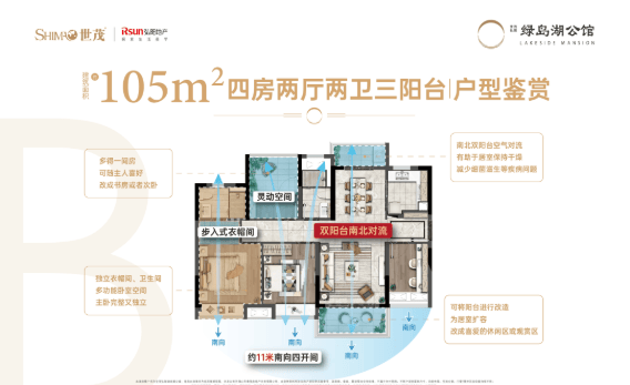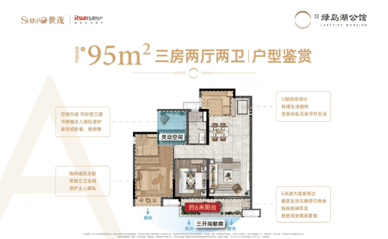 绿岛湖公馆推出了多种户型,面积段从75平方米到140平方米不等,涵盖三居室至四居室,以适应不同家庭结构的需求。每个户型都经过精心设计,强调空间布局的合理性和居住的舒适性。部分户型配备全景飘窗大阳台、双卫生间、主卧套房等特色设计,提升了居住体验。