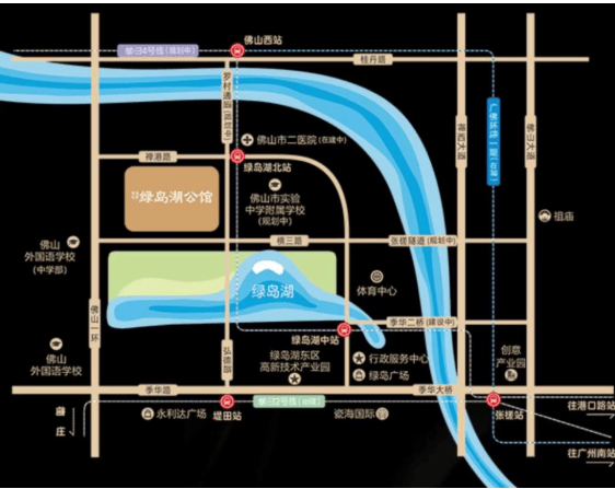 该项目坐落于佛山市禅城区绿岛湖板块,距离地铁站仅约400米,便于居民快速通达城市各个角落。周边覆盖有丰富的教育资源,包括幼儿园至中学在内的多所学校,尤其是紧邻的9年一贯制省一级佛山市实验中学附属学校,极大地提升了项目的教育附加值。