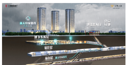 项目为白云城市中心站上盖TOD,规划接入18号线与22号线两条高速地铁,线路最高时速达160公里,实现“半小时市中心、一小时大湾区”的通勤圈。其中18号线串联广州东站、珠江新城、琶洲等核心区,3站可达广州东站;22号线作为串联海陆空的枢纽线路,直达白云机场、广州南站等关键节点。项目规划专属归家通道,业主可通过电梯直达地铁站,实现“风雨无阻”的无缝出行体验。