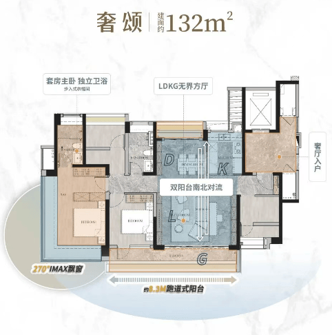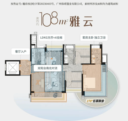 保利琅誉的主力户型为92㎡、108㎡和132㎡,全部按广州2023年新规设计,使用率普遍超过100%。以92㎡三房一卫为例,实际得房接近94㎡,主卧带270°转角飘窗,阳台进深足够摆下小桌椅。而108㎡做到四房两卫,LDKG一体化布局(客厅+餐厅+厨房+阳台连通),动线流畅,适合三代同住或二胎家庭。
