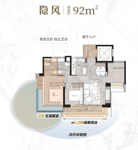 楼间距最宽处超50米,不仅保障了采光,也让低楼层住户不至于整天对着对面阳台发呆。站在92㎡户型的6.15米阳台往外看,视线越过中央园林,能望到远处树冠——这种“有景可借”的尺度感,在高密度城区很难得。