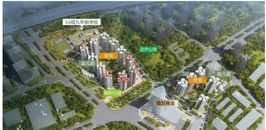 家门口54班九年一贯制学校:社区自带一所54班公立九年一贯制学校,已确定引入广州市玉岩学校,家长无需担忧孩子的教育问题。