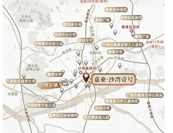 当前交通以自驾为主,项目可通过市良路、西线公路快速接入番禺大道、东新高速,约40分钟车程可达珠江新城。虽暂无地铁直达,但规划中的地铁17号线与26号线均设有沙湾站,未来有望提升轨道交通覆盖。现阶段对依赖地铁通勤的购房者存在一定挑战,尤其往返天河、海珠高峰期通勤压力较大。但对于番禺区内或弹性办公人群而言,现有路网已能满足日常出行需求,且低密环境与通勤成本之间形成合理平衡。