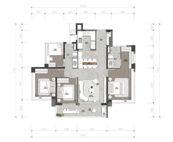 •高利用率空间:四叶草布局,减少过道占用,增大了公共区域的使用面积;