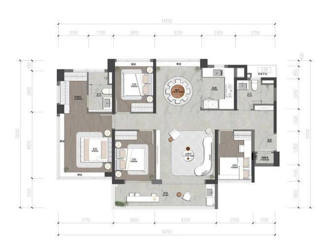 主卧:预留电动窗帘盒安装位,智能面板一键操控窗帘开合,以科技提升起居便捷度。