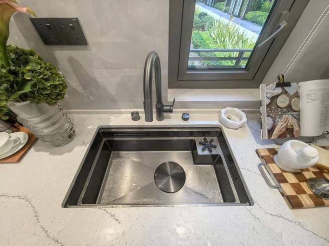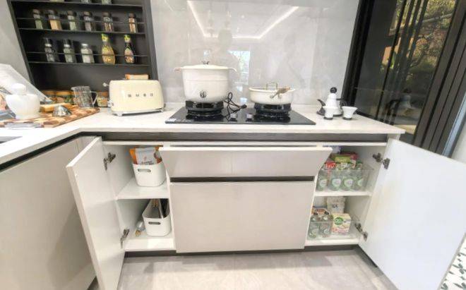 厨房:抽屉式调味拉篮与一体化橱柜设计,实现食材与厨具的科学归类。