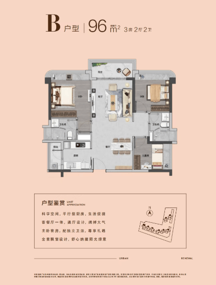 项目采用精装现楼交付,所有在售户型均为南北通透,采光通风效果极佳。主要户型面积从87㎡到99㎡不等,满足不同家庭的需求。其中,部分户型配置了南向阳台和宽敞的客厅空间,让每一户都能享有充足的自然光线和良好的视野。无论是刚需型购房者还是追求品质生活的改善型客户,都能找到适合自己的理想居所。
