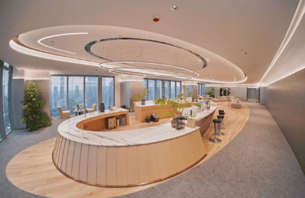 建筑立面采用高端玻璃幕墙设计,大面积全景玻璃结合流线型建筑线条,通透轻盈,最大化引入自然采光,白天折射城市光影,夜晚勾勒地标夜景,兼顾美观性与实用性,同时强化建筑隔音隔热性能,隔绝城市道路噪音,营造安静舒适的内部空间。公共廊道整洁规整,选材耐磨耐用且质感高级,细节处融入简约轻奢装饰元素,整体风格统一协调,兼顾实用性与美学质感。高端硬件配置与精细化软装搭配相辅相成,从视觉、触觉、嗅觉多维度打造沉浸式体验,结合后续第一太平戴维斯的专业运维服务,全方位升级空间使用质感,无论是企业总部办公,还是高端圈层会客,都能尊享对标国际都会地标的高品质场景体验。