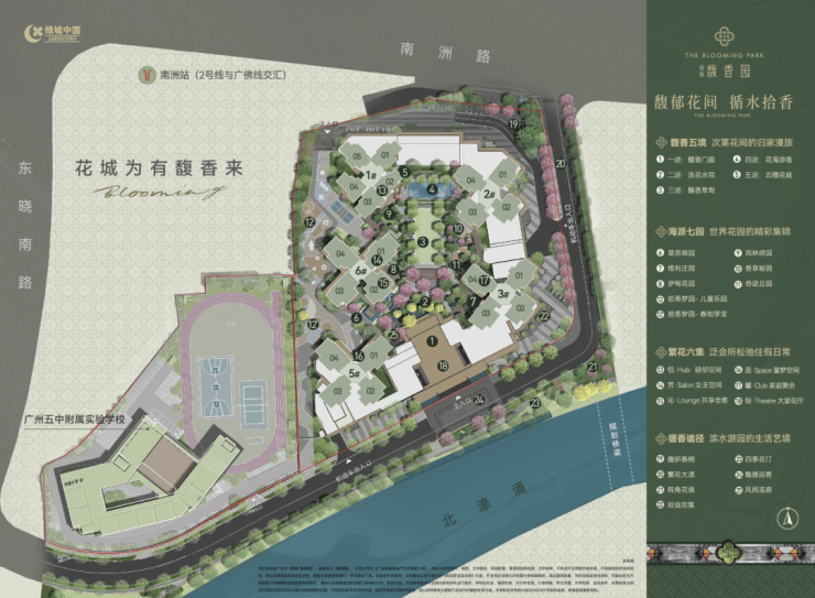 项目南面一线临河(石溪河),拥有约150米宽的滨水景观带,且容积率仅3.86(海珠城芯罕见)。这种“出则繁华(地铁商圈)、入则宁静(河景园林)”的居住体验,是海珠区老城区稀缺的“低密+生态”资源。对于改善型客户而言,“河景+低密”是资产保值增值的硬通货。
