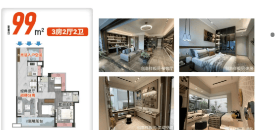 【明星爆款户型】98㎡3房2卫:作为项目的爆款户型,该户型拥有约6.1米L型大景观阳台,南向可眺望约2.1万㎡中轴园林,视野开阔。三开间朝南,超宽采光面,让室内空间明亮通透;次卧配备270°飘窗,进一步提升了空间的实用性与景观效果,非常适合刚需向刚改过渡的家庭。