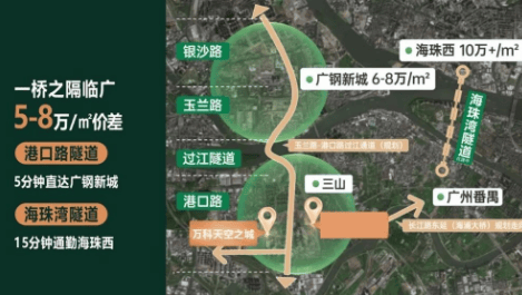 万科天空之城坐拥**五横三纵、五大桥、一电车、四地铁**的超级立体交通网络,是真正意义上的临轨道TOD住区,广佛通勤效率冠绝板块。轨道交通方面,楼下即是南海有轨电车1号线双站点,全线已通车,无缝换乘广佛线、佛山2号线,未来联动佛山4号线、11号线,实现4站达荔湾、4站达番禺、6站达海珠,快速融入广州主城生活圈。道路交通方面,五横三纵路网成熟成型,环岛南路已通车,接驳规划中玉兰路—港口路过江隧道,预计2026年通车后直达荔湾;海怡大桥、番海大桥、海浦大桥直通广州南站;三山西大桥快速连接平洲、千灯湖。驾车约15分钟可达广州南站,约25分钟可达白鹅潭,约30分钟可达珠江新城,广佛同城生活无缝衔接。公共交通方面,片区公交线路密集覆盖,接驳地铁站点及广佛主要商圈,满足非自驾人群出行需求。高效交通体系让项目实现“工作在广州、居住在佛山”的理想模式,同时极大提升资产流动性与成长性。