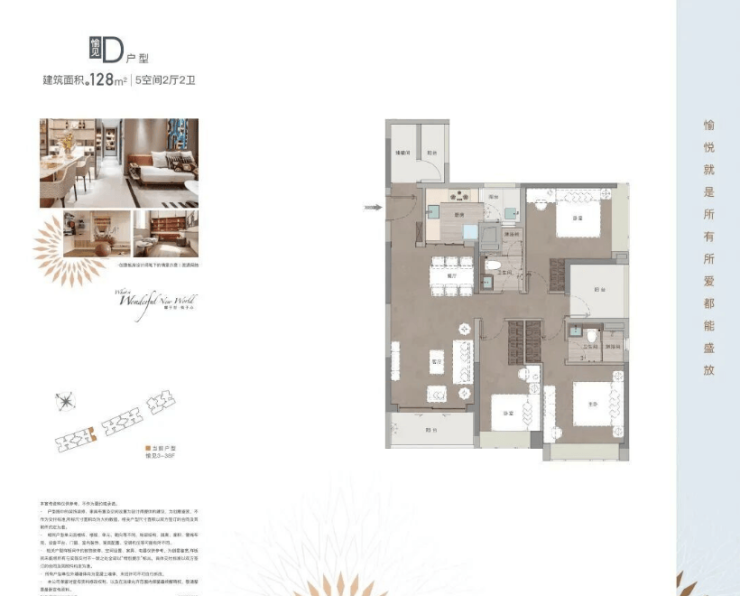 128㎡五房两厅两卫,总价680万-750万,主打“舒适改善”。该户型空间布局舒展,南北通透,采光通风出色;客厅大面宽设计,连接景观阳台,视野开阔,能欣赏到小区的自然景观;五个房间均带采光,不会出现暗房,居住舒适度高;主卧自带独立卫生间和衣帽间,空间宽敞,能满足业主的个性化需求;厨房和餐厅相连,动线合理,方便家人用餐和烹饪。