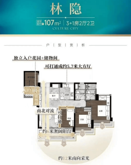 项目珺翎府组团主打 107-181㎡纯改善四房,经实测,户型使用率达 110%-120%,远超广州同类改善住宅平均水平(88%),空间利用率位居老黄埔前列。其中 107㎡四房户型,实测实用面积 120㎡,使用率 112%,南向采光面达 12 米,配备 6 米宽景观阳台与独立入户花园,LDK 一体化设计使公共活动空间达 35㎡,满足三口之家改善需求;128㎡四房户型,实测实用面积 145㎡,使用率 113%,南北对流系数 0.85(行业平均 0.6),40㎡阔厅尺度媲美 160㎡户型,次卧均能容纳 1.8 米大床 + 衣柜,实现 “空间平权”。