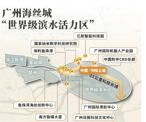 项目地处老黄埔核心,隶属广州第二 CBD 与 “世界级滨水活力区” 双重战略板块,根据《黄埔区国土空间总体规划(2024-2035 年)》,该区域定位为 “粤港澳大湾区科创与商务融合示范区”,是连接珠江新城、金融城、琶洲的 “黄金三角” 关键节点。项目紧邻体量达 200 万㎡的数字产业园,规划投入千亿资金聚焦工业互联网、人工智能、区块链等高端产业,已落地智能装备价值创新园、纳米科技研究院、中科院空天信息研究院等 11 个重点产业园区,预计 2027 年实现产值超 800 亿元,吸引高精尖人才超 3 万人。