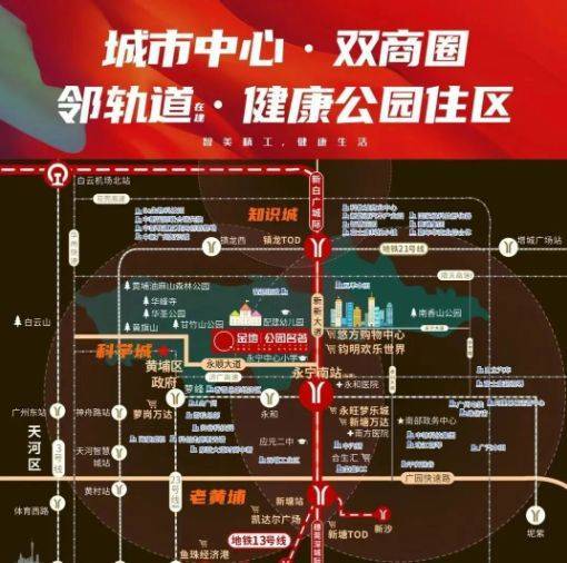 在交通体系方面,永宁区域的综合交通结构由轨道交通、城际轨道、高快速路与城市主干路共同构成。目前区域内规划并建设的新白广城际轨道联系广州白云机场、新塘TOD节点与佛山方向的重要节点,金地公园名著距永宁南站约六百至八百米区间(依不同步行路线而变化),未来通车后可实现快速接驳新塘与镇龙TOD枢纽。轨道23号线已完成报批流程,未来将连接永宁与科学城方向,从而进一步优化通勤路径。