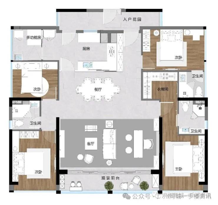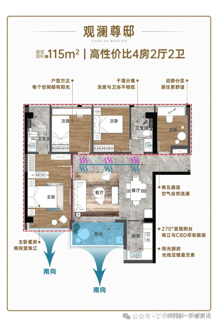在户型设计上,中洲紫轩充分考虑到不同家庭结构的需求,推出了建面约79-171㎡的三至五房多种选择。其中,9-25层采用两梯四户设计,26-31层采用两梯三户设计,保证了居住的私密性与舒适度。户户朝南的设计,让阳光与江风成为生活的常客。特别是南向江景房,不仅视野开阔,更能享受到无遮挡的金融城CBD与广州塔盛景,这种景观价值在核心区内极为稀缺。