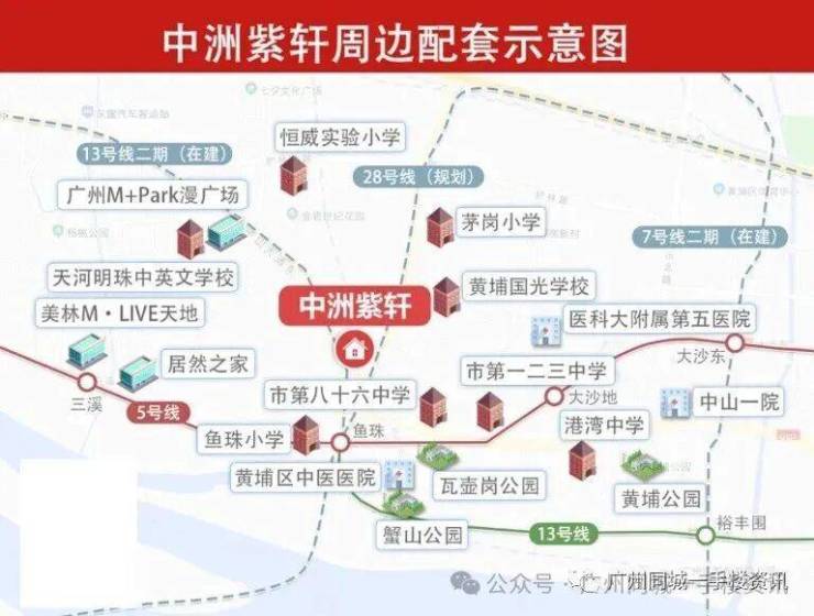 中洲紫轩恰好位于这一黄金三角的几何中心,毗邻金融城东区,距离琶洲直线距离极近。这种“居中”的地理位置,赋予了项目无与伦比的通达性。项目步行仅需8分钟即可到达鱼珠地铁站,这里是广州地铁5号线和13号线的交汇点。5号线被誉为广州的“东西大动脉”,一站直达天河核心商圈,无需换乘即可实现与珠江新城的无缝衔接。13号线则连接了黄埔东部与中心城区,极大地拓展了生活半径。此外,规划中的28号线(城际快线)鱼珠站,将进一步缩短项目到琶洲的时间成本,预计两站即可抵达,这将使中洲紫轩真正成为“双核驱动”下的辐射中心。