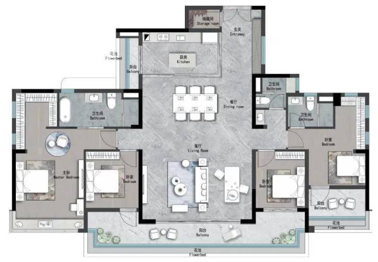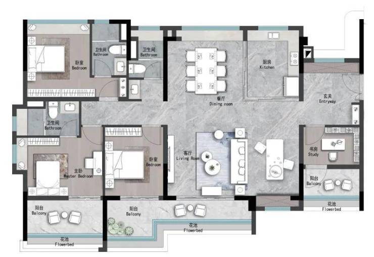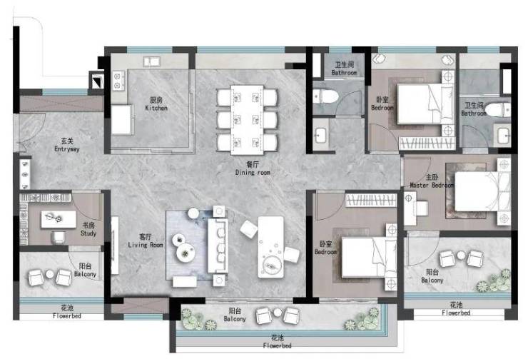 108㎡四房两厅两卫(南北通透,主卧套房)