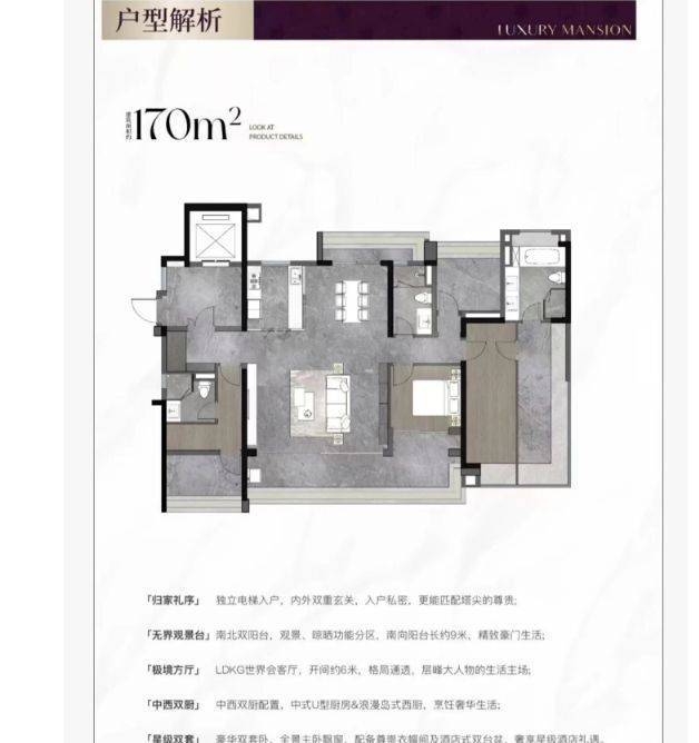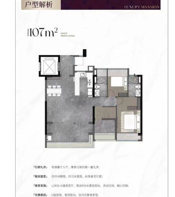 户型设计精妙绝伦,主打 107 - 170㎡的纯改善户型,且新规户型使用率达 115% 以上,空间利用高效合理。以 107㎡四房为例,四开间朝南,面宽达 11.8 米,阳光洒满每个角落,居住舒适度极高。每个户型都充分考虑居住者的需求,动静分区明确,功能空间布局合理。大户型如 170㎡户型,拥有宽敞的客厅、豪华的主卧套房以及多个功能房间,可满足三代同堂或对生活品质有高要求的家庭需求。纯板楼设计确保户户朝南,避免视线遮挡,为业主营造私密、舒适的居住空间,尽显品质生活风范。