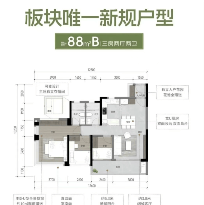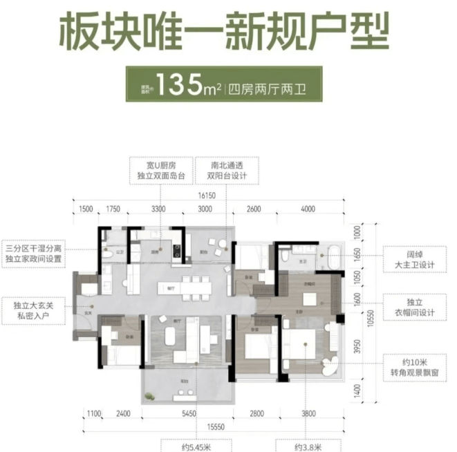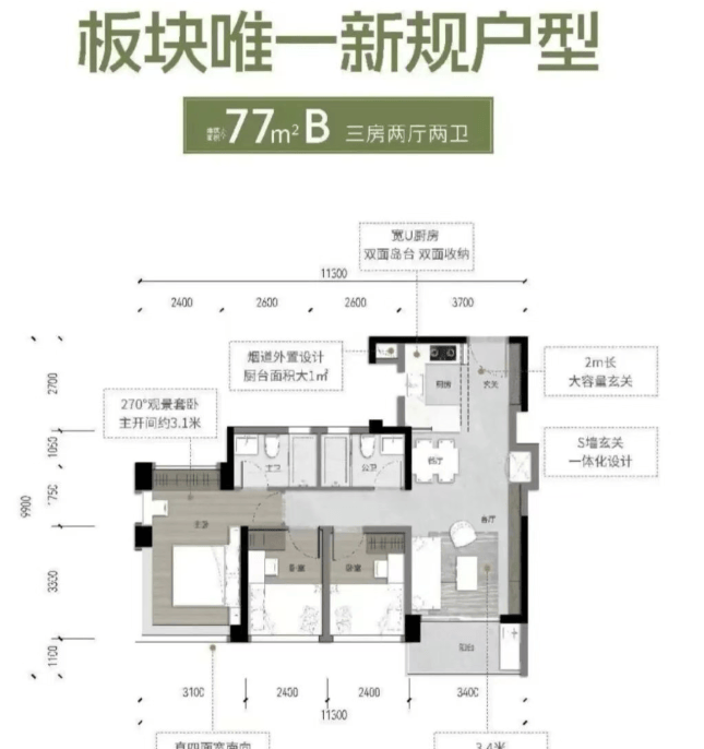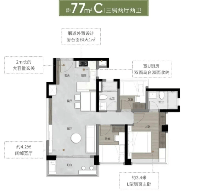 提供的户型面积涵盖了77平方米至135平方米的多种选择,包括三房和四房的设计,满足不同家庭的需求。特别是部分户型设计了超过7米宽的大阳台,并全屋配备了中央空调和方太厨电三件套,提升了居住的舒适度和实用性。