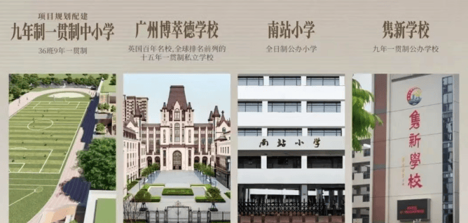 教育配套方面,项目自身配建了一所9班幼儿园和一所36班九年一贯制公办学校,且引进了湖南师范大学附属学校,预计2027年9月开学。此外,周边还有私立十五年一贯制的广州博萃德国际学校,为居民提供了多样化的教育选择。
