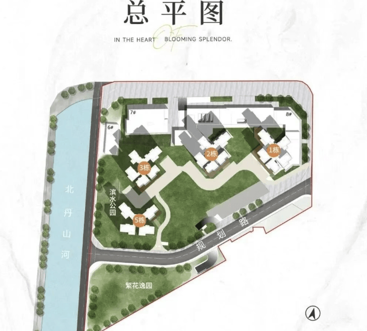 社区内:2730㎡滨水公园+4512㎡繁花逸园