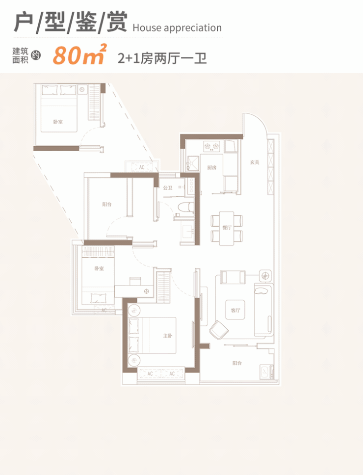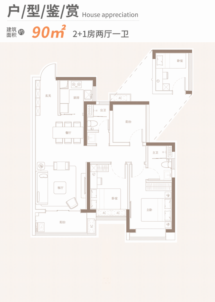 88㎡2+1房:总价162.8万元起,南北通透,主卧带飘窗;