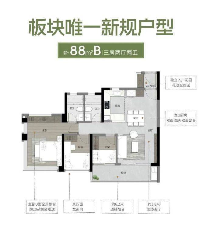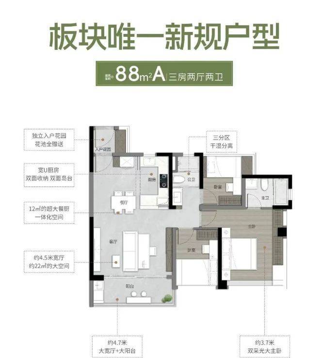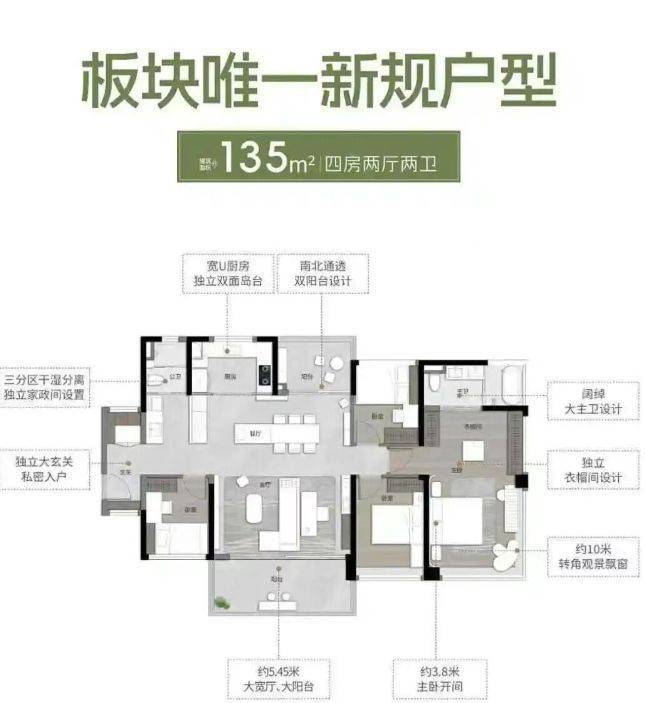 户型设计亮点满满,得房率超 120% ,最高约 138% 。主推建面约 77 - 135㎡ 三到四房,14 种变异户型,满足不同需求。部分阳台开间超 7 米,空间宽敞。装修品质极高,99 项精选定制板材,全屋隐藏式中央空调交付,配备方太厨房三件套、智能马桶等,还有 120 处魔鬼精工细节,提升居家质感。