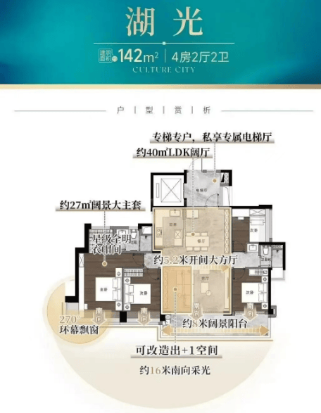 梯户比:建面107㎡-128㎡户型,为3梯5户设计;建面约143-181㎡户型为3梯3户设计(专梯专户)