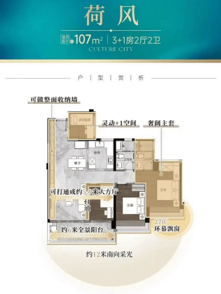 珺翎府主推建面约107-181㎡纯改善四房户型,使用率最高可达120%,每户均享有南向采光,最大限度地保证了室内的通透明亮。特别是181㎡的大平层户型,采用全屋南北对流设计,最大化利用自然通风,营造舒适的居住环境。