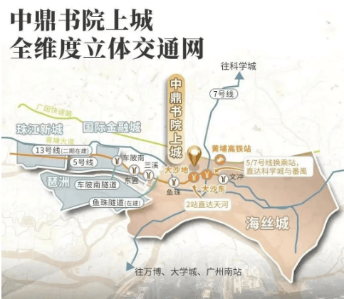 中鼎书院上城珺翎府距离地铁5号线大沙地站仅约600米,步行即可轻松抵达,无需担心天气影响。从这里出发,可以直达金融城与珠江新城等核心商务区。此外,周边还有广园快速和黄埔大道两条主要干道,贯穿东西,出行极为便捷。