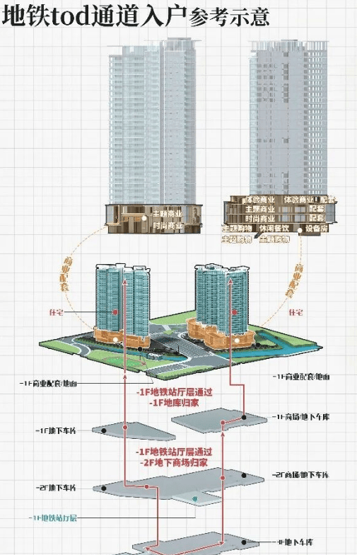 非纯住宅地块:TOD属性带来便利,也伴随一定人流与噪音。