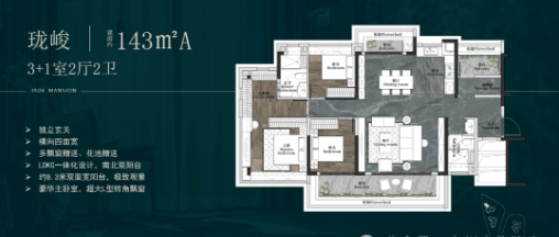 【珑峻】约143㎡四房两厅两卫:主卧套房+多功能空间,满足多孩或三代同住;