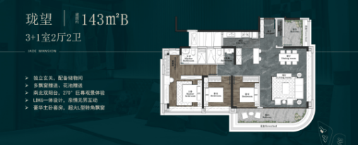 五、户型设计:135-143㎡三至四房,全南向奢阔布局