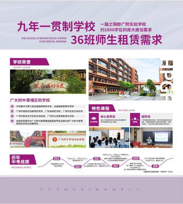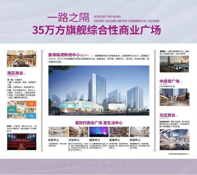 商业配套丰富。项目自带 24 小时文旅商业中心,东面规划在建黄埔第三个万达广场 - 茅岗万达(暂定名),预计总建面约 35 万㎡,总投资约 40 亿元,与项目形成商业互补。周边还有美林天地、宜家家私、山姆会员店、乐都汇、港航中心等,商业氛围浓厚,满足居民日常购物、休闲娱乐需求。