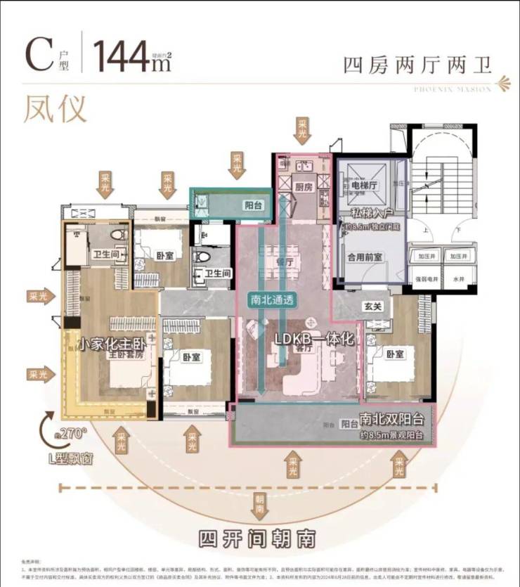 建面约 108 平方米的凤起户型,采用南向四开间设计,约 6.3 米双面宽阳台,采光通风极佳。LDKB 一体化设计,将客厅、餐厅、厨房与阳台无缝连接,形成一个超大的家庭活动空间,增强了家人之间的互动交流。700 库玄关收纳系统,能够轻松收纳各种生活杂物,保持家居整洁。主卧套房设计,配备独立卫生间与衣帽间,约 270° 转角飘窗,不仅提升了采光效果,更带来了开阔的观景视野。建面约 128 平方米的凤鸣户型,同样采用南向四开间设计,约 7.5 米双面宽阳台,空间更加宽敞舒适。800 库玄关收纳系统,收纳能力更强。主卧套房设计,约 270° 转角飘窗,居住体验更加奢华。建面约 144 平方米的凤仪户型,采用纯板楼设计,两梯两户,南北通透,私密性与舒适度极佳。私梯入户设计,业主可独享约 8.5 平方米的独立门庭空间,可作为入户花园或收纳空间使用。约 8.5 米南向景观阳台与北向生活阳台形成对流,通风效果极佳。南向四开间设计,阳光充足。LDKB 一体化设计,空间开阔大气。主卧套房设计,配备独立卫生间、衣帽间与约 270° 转角飘窗,是终极改善的理想选择。所有户型均采用高品质精装修交付,装修标准严格按照绿城高端产品系列执行,选用国内外一线品牌建材与家电,注重细节打造,为业主提供拎包入住的便捷体验。
