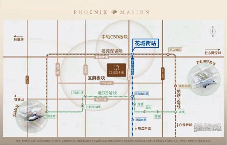 智都绿城凤凰于飞雄踞广州市花都区凤凰北路,地处区府 CBD 板块与中轴 CBD 板块黄金交汇处,既享受区府板块成熟完善的生活配套,又承接中轴 CBD 千亿级的发展红利,叠加三东村百亿旧改的历史机遇,地理位置得天独厚,是花都城市发展的核心价值高地。花都区作为广州北部的门户枢纽,是粤港澳大湾区的重要节点城市,近年来随着广州 "北优" 战略的深入实施与空铁融合发展示范区的建设,花都迎来了前所未有的发展机遇。在国家 "十五五" 规划中,花都被定位为广州北部综合交通枢纽、先进制造业基地与生态宜居城区,将重点发展绿色金融、航空物流、智能装备、文化旅游等产业,打造成为粤港澳大湾区北部增长极。