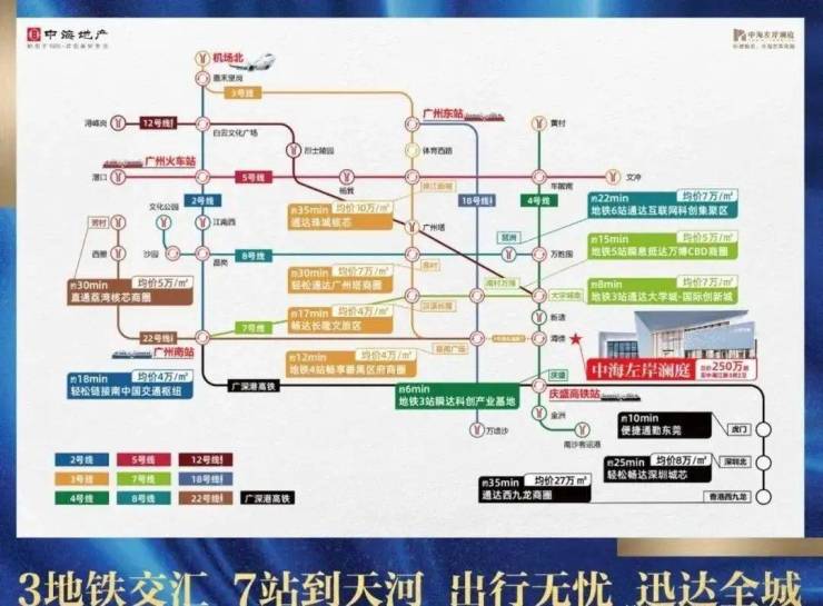 交通超便利🚇 周边 3 条地铁交汇,既有现成的 4 号线、3 号线东延段海傍站,还有规划中的 8 号线南延段,畅行广州全城不是梦。自驾更是轻松,新化快速 20 多分钟直抵琶洲,30 多分钟通达珠江新城、金融城核心区,商务出行、休闲自驾统统满足。