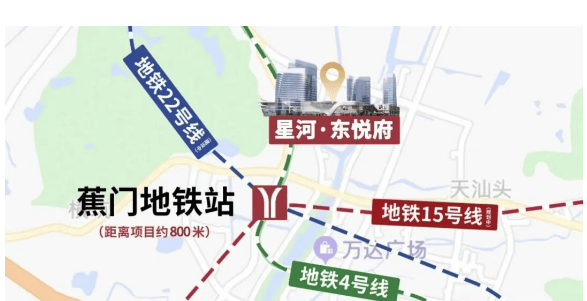 星河·东悦府地处南沙金洲-蕉门板块,这是南沙真正的“城市客厅”。项目步行约600米即达地铁4号线蕉门站,可快速接驳万顷沙(18号线)、庆盛(高铁+18号线)等枢纽,30分钟内直达珠江新城。